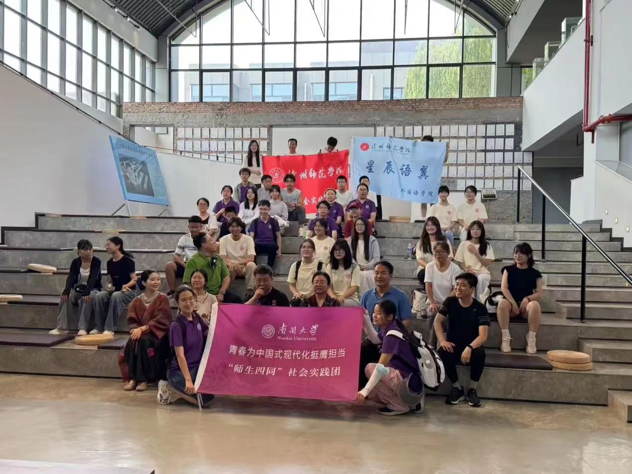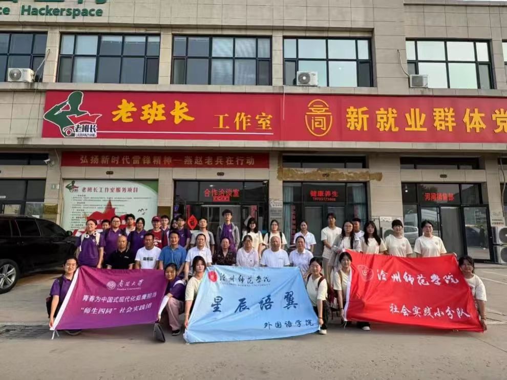 7月12日,外国语学院“星辰语翼”社会实践小分队与南开大学外国语学院“师生四同” 社会实践团携手,在河间开展了一场内容丰富的研习实践活动。活动涵盖参观企业、文化交流、经验分享等多个环节。外国语学院党总支书记陈瑞坤、教师武云鹏与南开大学乡村工作站站长蔡印同参加。