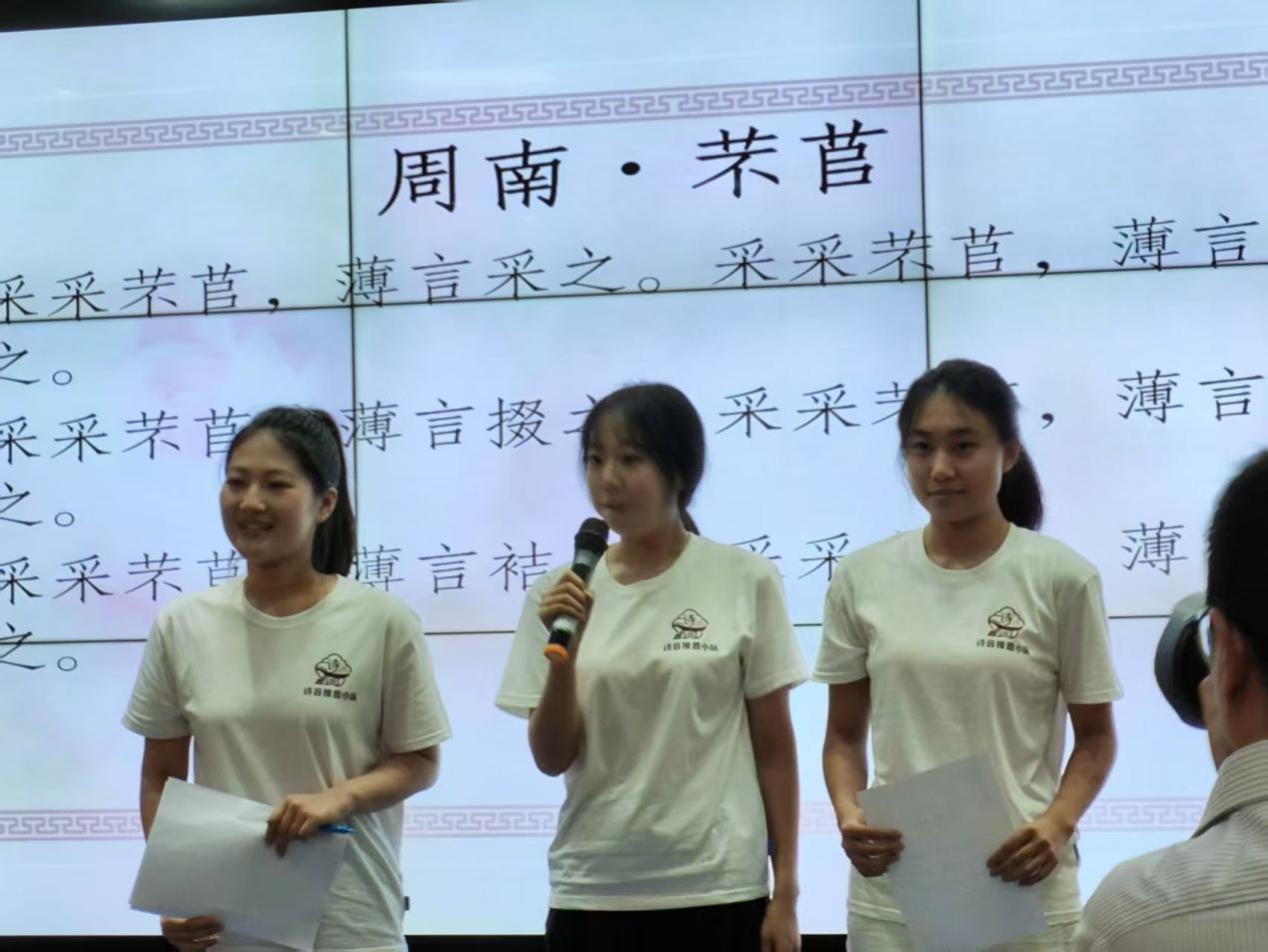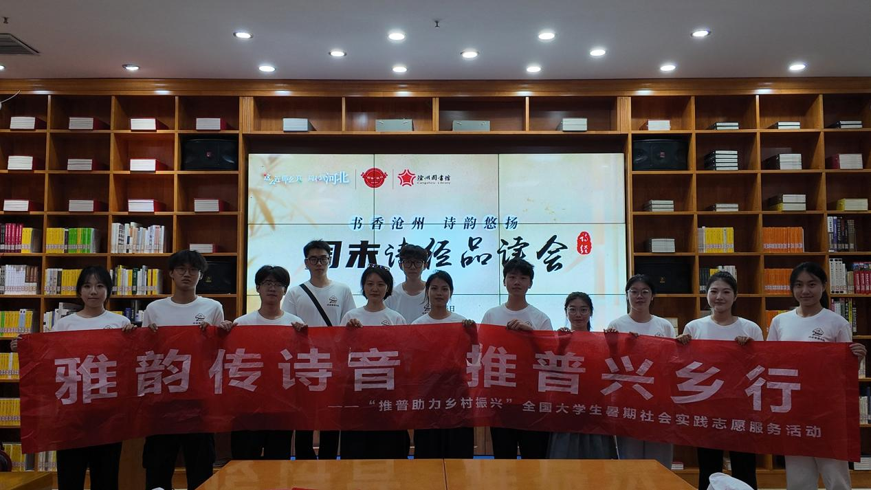 在沧州市图书馆的“周末诗经品读会”上,“诗音推普”青年团与当地市民共同聆听专家对《诗经》的解读。解放路小学的同学们也参与其中,与大学生们一起朗诵《芣苢》。现场气氛热烈,孩子们清脆的童声与大学生们标准的普通话交相辉映,构成了一幅动人的文化传承图景。