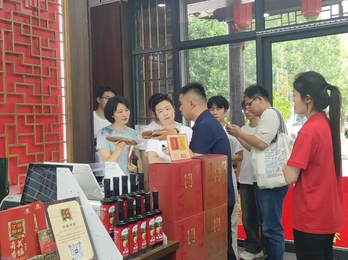 7月2日下午,“运河拾遗”团队走进沧州市运河区的丁府御封奇美香肠,品牌因乾隆顺大运河南巡时纪晓岚进献而获御赐“奇美”之名。企业负责人丁阔向团队成员详细介绍了从奇美香肠与大运河息息相关的品牌故事和历史传承。品牌以包装为载体将运河文化、历史典故、家族传承巧妙融入,团队成员深刻体会到 “包装即媒体” 的元媒体理论在传统品牌中的生动实践。企业负责人向团队成员生动诠释奇美能被评为河北老字号的关键“有根、有魂,根就是有历史有记载,一直传承至今;有魂就是一定有发展理念,良好经营创造更好的结果”。老字号品牌既有对传统工艺的传承和对品质的坚守,更有对当下市场灵敏的把握。团队成员于实地探访中感受“河北老字号”荣誉背后的文化积淀与品质坚守,通过深度访谈了解了老字号品牌的发展历程和运营模式,同时搭建了在品牌宣传、文创开发等领域合作的桥梁,未来将以专业实践赋能传统文化传承与品牌活化。