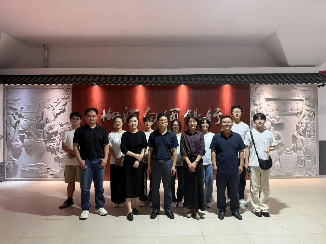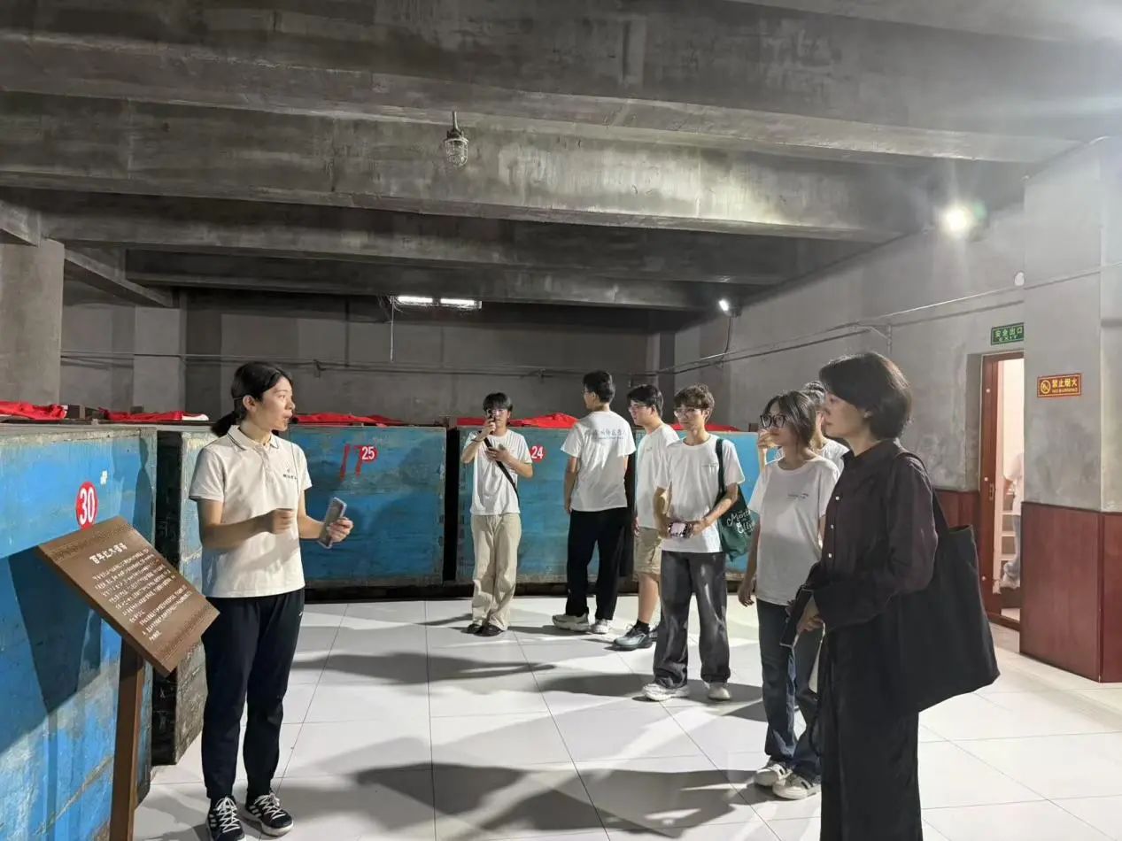 7月3日上午,“运河拾遗”团队走进运河畔拥有百年历史的老字号企业——御河酒业,团队师生首先对企业负责人进行了访谈,了解了御河酒业作为沧州地域名酒品牌的历史积淀与发展脉络。随后,参观御河酒博物馆,在馆内了解到御河酒从初期发展到近代转型的发展轨迹,讲解员结合实物展示,详细介绍了御河酒各阶段代表性产品及其工艺特色。沧酒的崛起依赖于沧州运河泉水的优越,运河商贸往来给沧州的酿酒业带来了无限的生机,同学们认真聆听感知沧酒独特的历史文化。在实地探访酿酒车间时,师生们了解省级非物质文化遗产——御河老酒酿造技艺,近距离观察原料筛选、制曲发酵、蒸馏窖藏等核心酿酒工艺环节。“御河酒的百年发展史,就是一部运河商贸文明的微观缩影”, 师生们沉浸式探访酒文化博物馆与酿酒车间的过程中,也以专业视角解构老字号品牌与运河文化的共生关系。