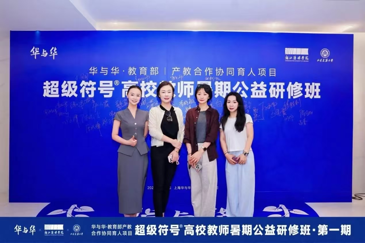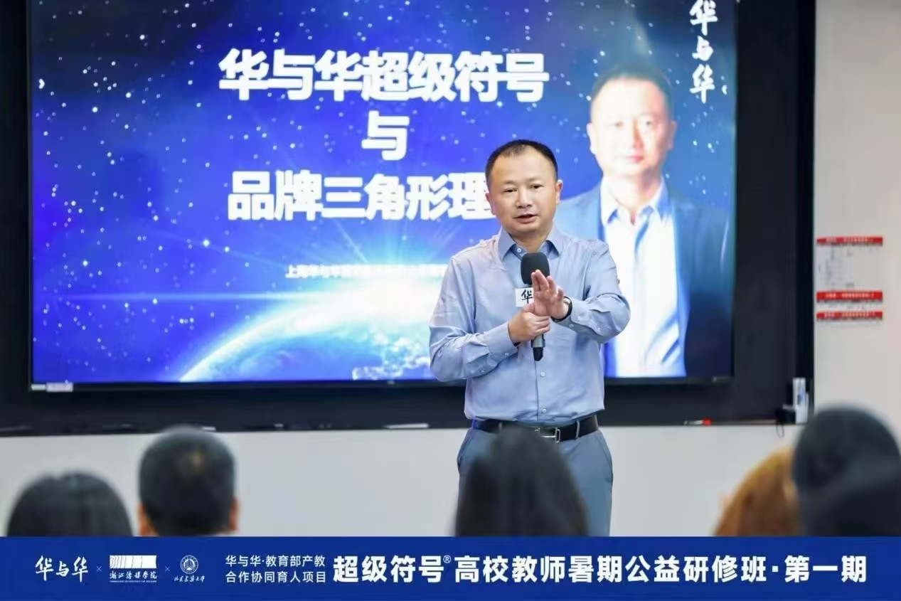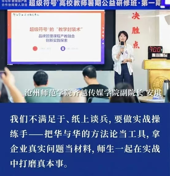 7月24至25日,齐越传媒学院副院长安琪,教师于园园、沙莎、刘忻怡受邀赴上海参加华与华·教育部产教合作协同育人项目“第一期超级符号高校教师暑期公益研修班”,学习交流华与华超级符号和品牌三角形理论及其在专业教学中的运用经验。安琪作为特别受邀嘉宾做广告学专业《品牌管理》课程产教融合经验分享。