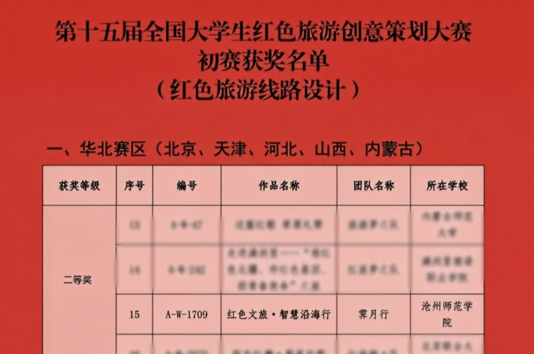 当红色基因遇上青春创意,当文旅智慧碰撞实践火花,捷报便如约而至,伟德商学院酒店管理专业学子凭借扎实功底、创新思维与实践魄力,在第十五届全国大学生红色旅游创意策划大赛初赛(华北赛区)中,于红色旅游线路设计、红色旅游文创产品设计两大赛道全力冲刺,均斩获二等奖佳绩!