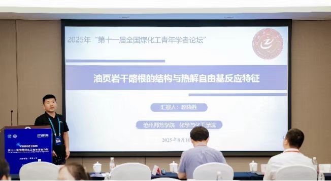报告中,赵晓胜介绍了其团队在油页岩结构及热解反应方面的最新研究进展。报告内容数据详实、观点鲜明,获得了与会专家和学者的广泛关注与积极评价。会后,赵博士与多位同行围绕研究思路、技术路线及合作方向进行了深入交流。