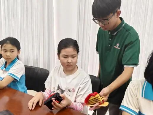 为探索“推普+特色艺术”的创新路径,实践团充分发挥成员宋佳航的快板特长,打造快板特色推普课堂。团队将普通话发音要点、规范用语知识融入快板创作,编写了兼具知识性与节奏感的快板段子,通过“教技巧、练表演、排节目”的步骤,让学生在跟着节奏打板、念词的过程中,既提升了普通话水平,又增强了语言表现力。这种创新模式不仅打破了传统推普的单调感,更让学生在兴趣驱动下主动学习,形成了独具特色的推普成果。