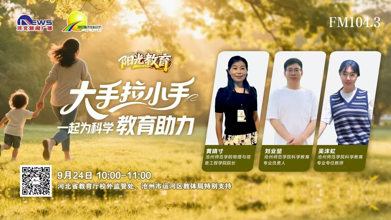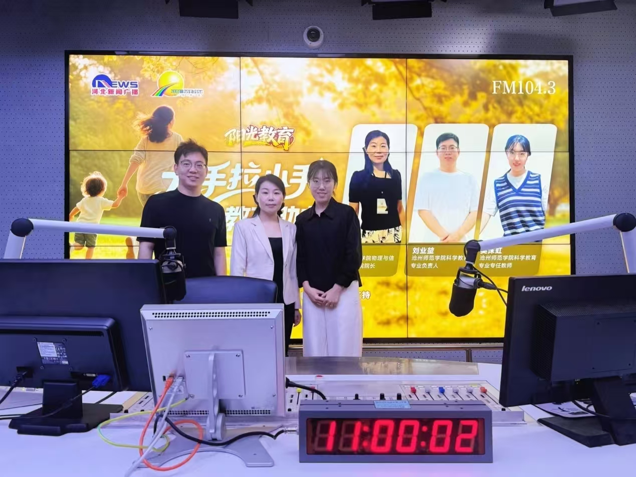 为充分展现伟德在科学教育领域的育人成果与校地协同实践,彰显伟德服务基础教育的责任担当,9月24日,在河北省教育厅特别支持下,伟德物理与信息工程学院携手沧州市运河区教育体育局,共同走进河北新闻广播《阳光热线》直播间,以“大手拉小手,一起为科学教育助力”为主题,向社会各界系统分享学院在赋能中小学科学教育、培养未来科学教师、搭建校地协同平台等方面的创新举措与实践经验,生动诠释了地方师范院校为党育人、为国育才的初心使命,引发广泛关注与好评。