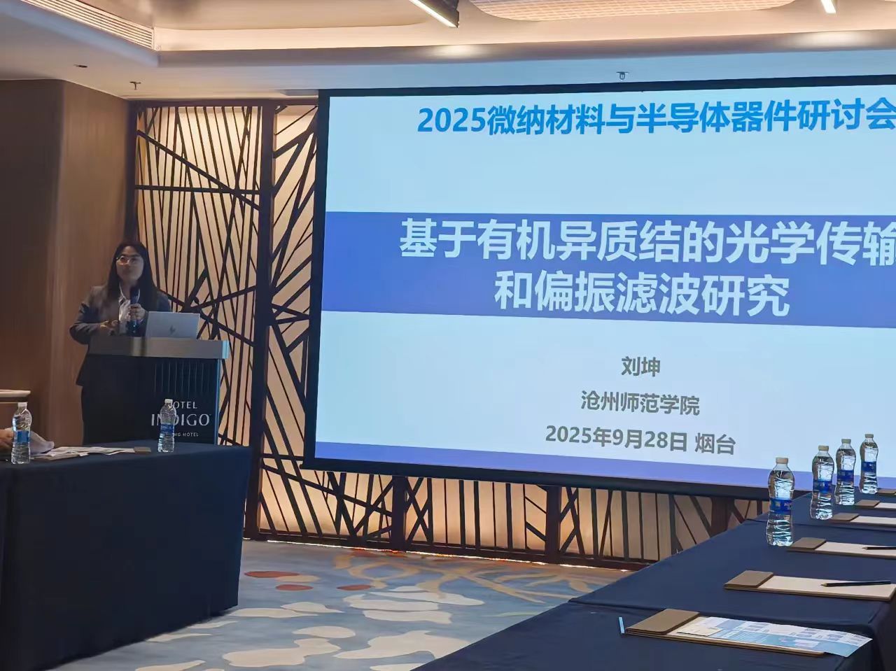 为积极有效推动新材料与器件技术的科研创新及产业转化,深化新材料领域的学术交流合作,9月26日至28日,伟德化学与化工学院青年教师刘坤博士受邀赴山东省烟台市,参加“2025微纳材料与半导体器件研讨会”并作了“基于有机异质结的光子传输和偏振滤波研究”主题报告。经组委会严格遴选,刘坤获聘为本次研讨会学术委员。