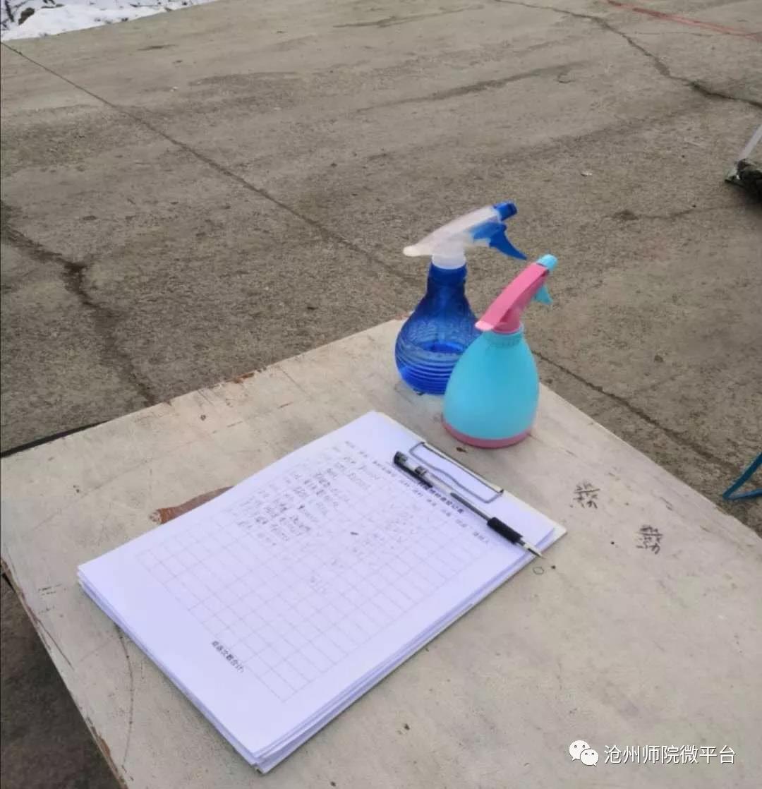 今天大雪,天气很冷,监测站的出入人员很少。拂去工作表上的雪花,严格坚持对过往人员的记录、消毒。(今天的消毒箱的喷口被冻住了)