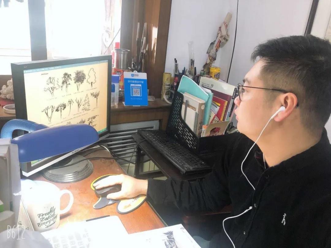 张凯老师本学期承担园林专业的《水彩》课程,水彩作为一门专业性和现场指导性很强的绘画课程,如何进行网络授课成了难题。于是张老师把家变成了画室,自己一遍一遍画,用手机一遍一遍录,大到整幅画的布局,小到每一处下笔的手法都为学生一一讲述。而张老师的爱人也是一名初中教师,夫妻两人由于特殊时期网络授课的原因,只能将四岁的孩子送到父母家照顾。