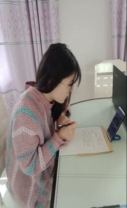 尽管长时间看电脑,眼睛有点酸疼,但是还是可以收获颇多的知识。每节课的背后,都倾注了老师们许多的心血。虽然不可以到学校学习,但我们不会松懈,不会辜负老师们的一片苦心,我们会逐渐适应这种新的教学模式,认真配合老师教学;尽管不在学校,但我们还是可以进行师生互动,而且学生们也享受其中,老师不能看到同学们的听讲状态,但这也促使教学由教师的教转变为学生的学。提高了我们的自主学习能力。在教学过程中除了直播,还会利用小视频等形式提交学习情况,老师再结合学生学习反馈进行讲解,真正体现先学后教。