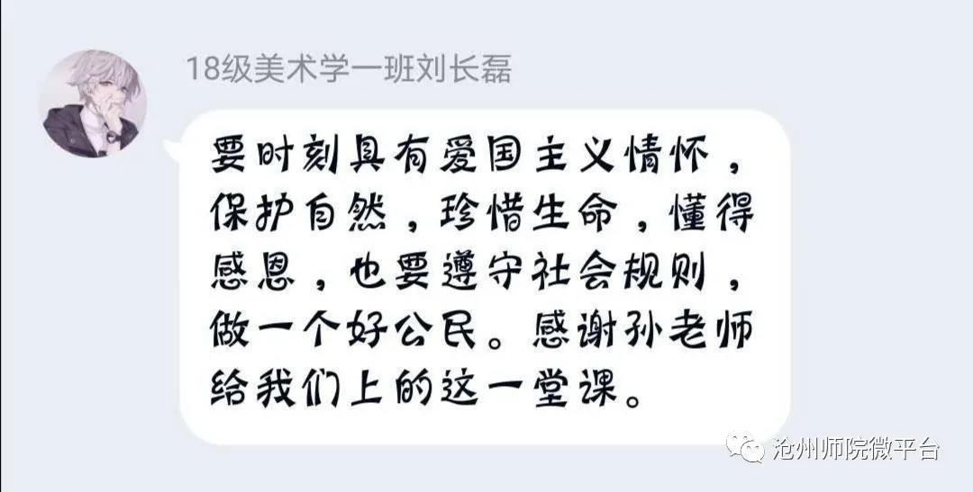 接下来的线上党课,孙静怡老师带领积极分子同学们围绕“战疫”展开,通过次第展开 “爱与感恩”“规则”“社会责任感”“生命”“爱国主义”五个方面,深刻讲述了新冠肺炎疫情期间青年大学生应有的思考和学习,鼓励大家以党员的标准要求自己,承担起作为入党积极分子应有的责任和担当。