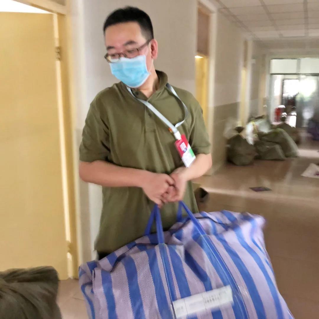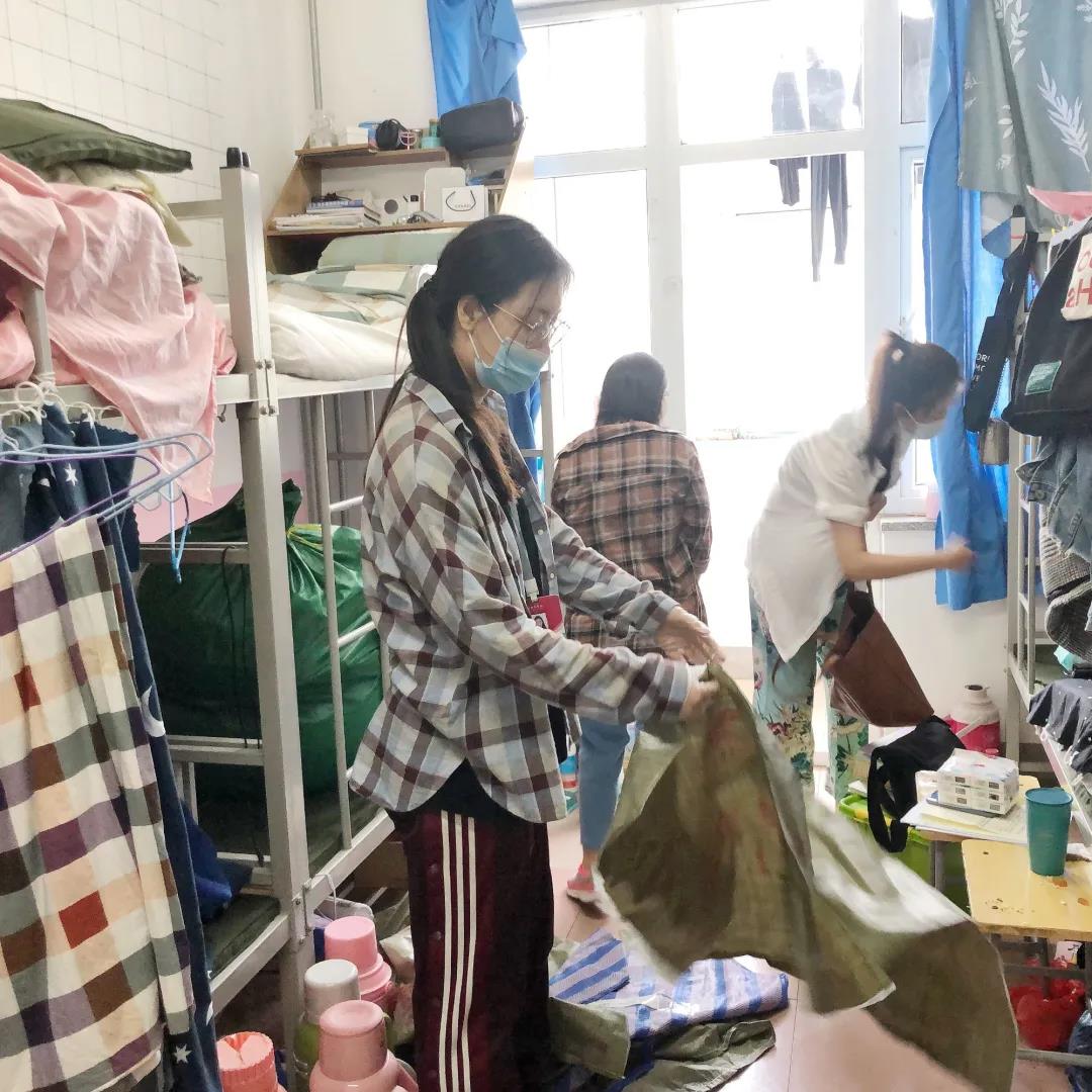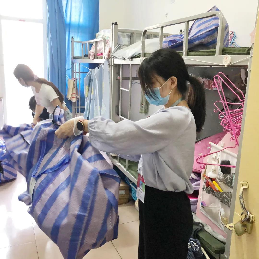 学院书记、院长、志愿服务的党员老师们亲自上阵,在宿舍中帮助返校生打包行李、整理物品等。与不能及时返校的同学进行视频对话,一一核对物品,细致入微,小心包裹,不遗漏、不损坏一件学生们的“宝贝”。
