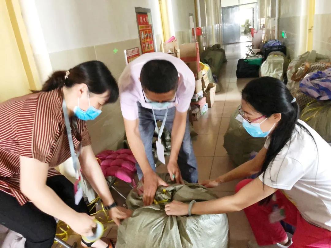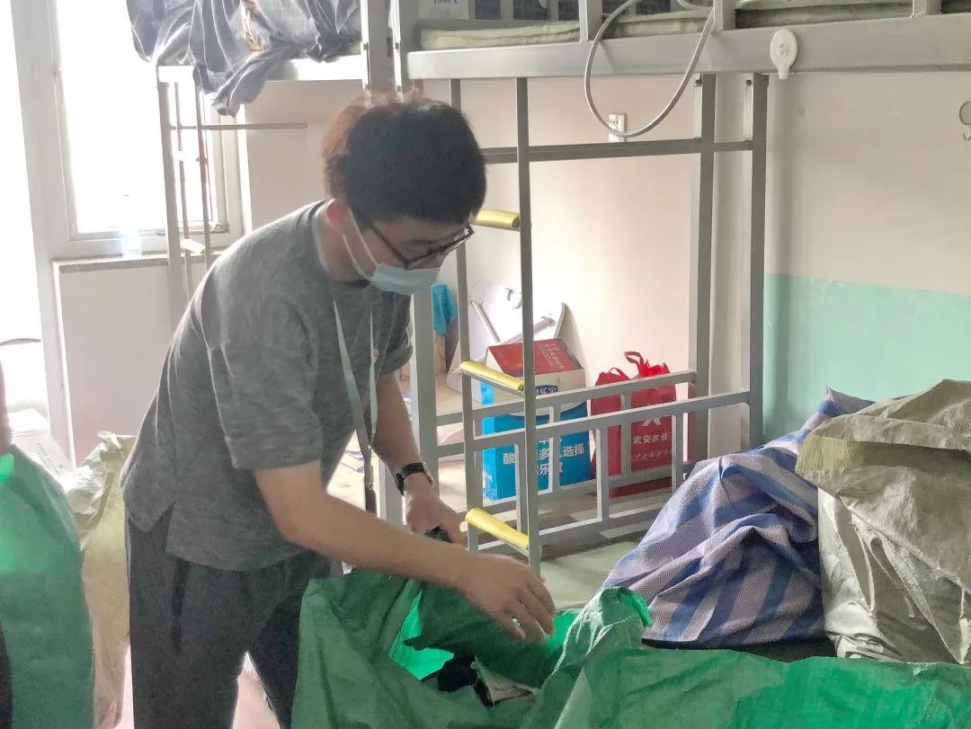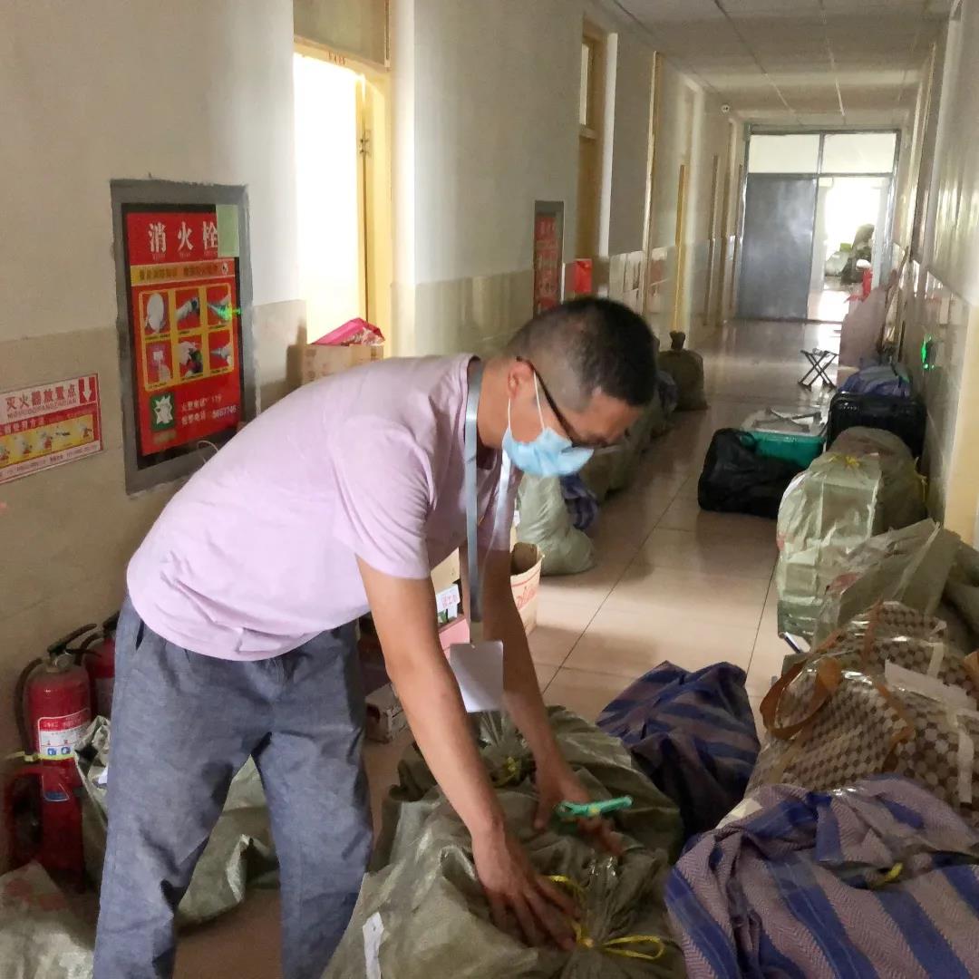 学院书记、院长、志愿服务的党员老师们亲自上阵,在宿舍中帮助返校生打包行李、整理物品等。与不能及时返校的同学进行视频对话,一一核对物品,细致入微,小心包裹,不遗漏、不损坏一件学生们的“宝贝”。