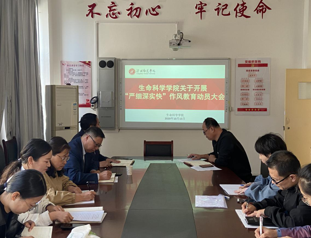 根据学校党委《关于巩固深化“不忘初心、牢记使命”主题教育成果在全体教职员工中开展“严细深实快”作风教育的实施方案》要求,10月16日下午,生命科学学院党总支组织召开“严细深实快”作风教育动员大会,党委常委、副校长周振平参加会议并予以指导。会议由该院院长、教师党支部书记刘福春主持,学院全体教职工参加此次会议。