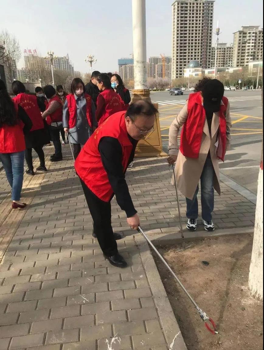 3月30日下午,文学院党总支组织党员志愿者走上街头,开展爱国卫生志愿服务党日活动,捡拾创城网格化责任区域张庄子村北、村东一线绿化带及甬路的白色垃圾。