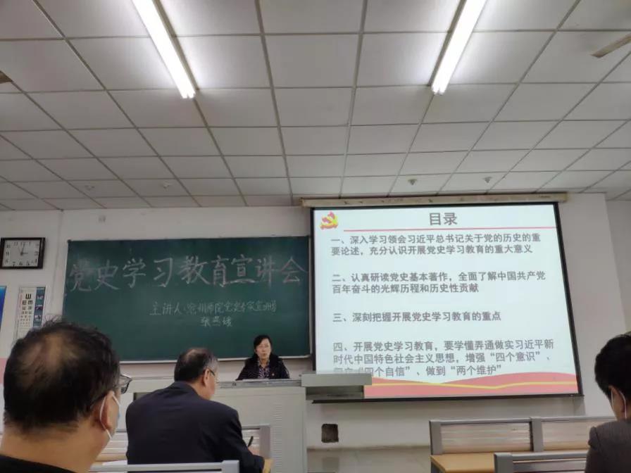 4月22日下午,机械与电气工程学院党总支、生命科学学院党总支联合组织题为“中国共产党的奋斗历程和基本经验”的党史学习教育宣讲会。活动由马克思主义学院教师张燕娥主讲,机电学院党总支书记翟玉昌主持,机电学院和生命科学学院全体党员教师、学生代表参加。