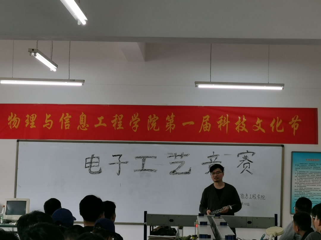 5月4日,由物理与信息工程学院举办的第一届科技文化节正式开幕。活动涵盖科幻、科技纪录片欣赏,科幻、科技主题宣讲,无人机性能操控介绍和展演,科技创意作品展示,电子焊接大赛,微课比赛,教具制作大赛,实验讲解解说比赛,征文比赛,红色故事会,科技和文化主题文艺汇演等。