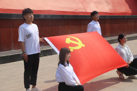 在政史学院党总支书记谷良峰、商学院党总支书记毕卫华的带领下,全体党员教师深入实地研学,在五勇士铜塑广场重温入党誓词,缅怀革命先烈,传承红色精神。