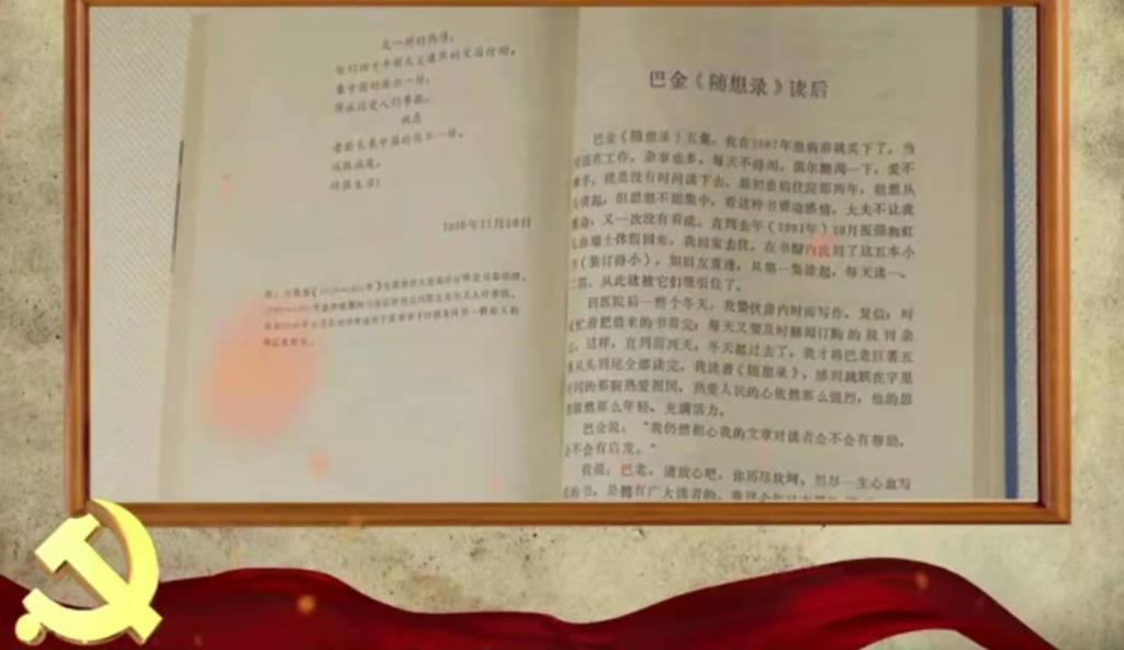 齐越老师非常喜欢读巴金先生的书。在齐越教育馆的这个展柜里,有一本非常珍贵的书,这本书是巴金先生写的《随想录》。