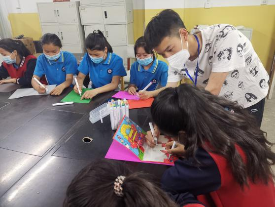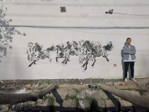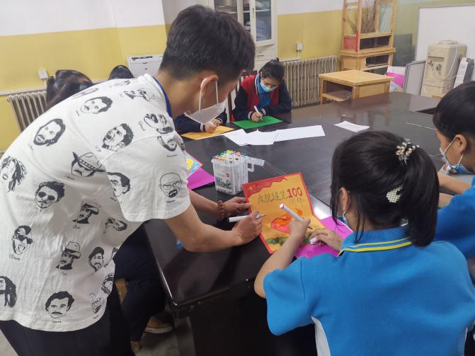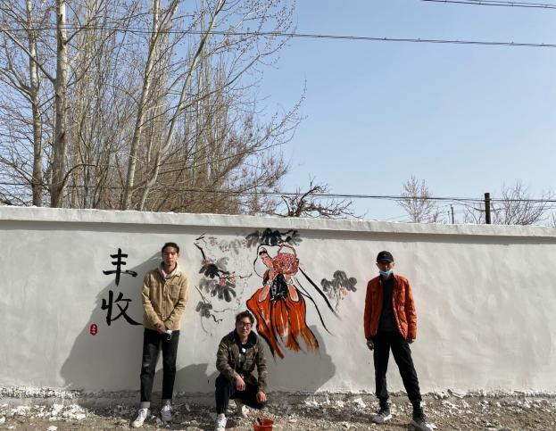 一代人有一代人的使命,一代人有一代人的担当。为迎接中国共产党成立100周年,美院学子王超群在新疆支教过程中,一方面积极学习党的历史与章程,将党史知识变成一个个深刻的故事,在日常课堂中讲给学生;另一方面,他充分利用自己的特长,带领学生设计绘画贺卡,写下对祖国美好的祝福。课余时间,王超群同伙伴们一起进行美丽乡村公益墙绘活动,积极宣传习近平新时代中国特色社会主义思想,用优秀文化做引领,营造浓厚的文化氛围。