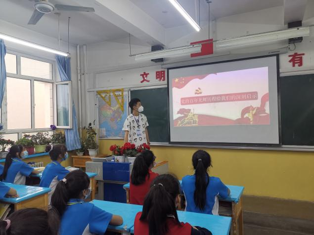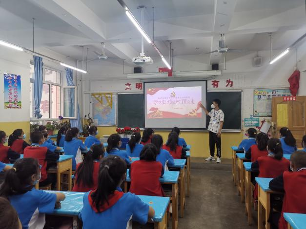 王超群带领学生开展“学党史 知党恩 庆华诞 写祝福”活动