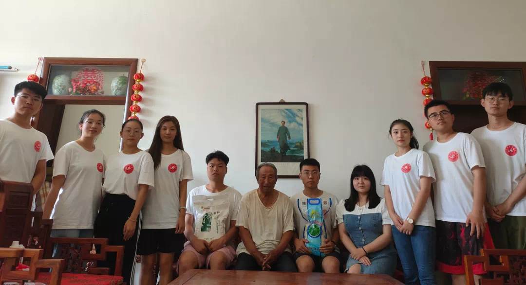 “蒲公英”爱心支教小分队走进坨里村,慰问老干部老党员,与老党员合影留念