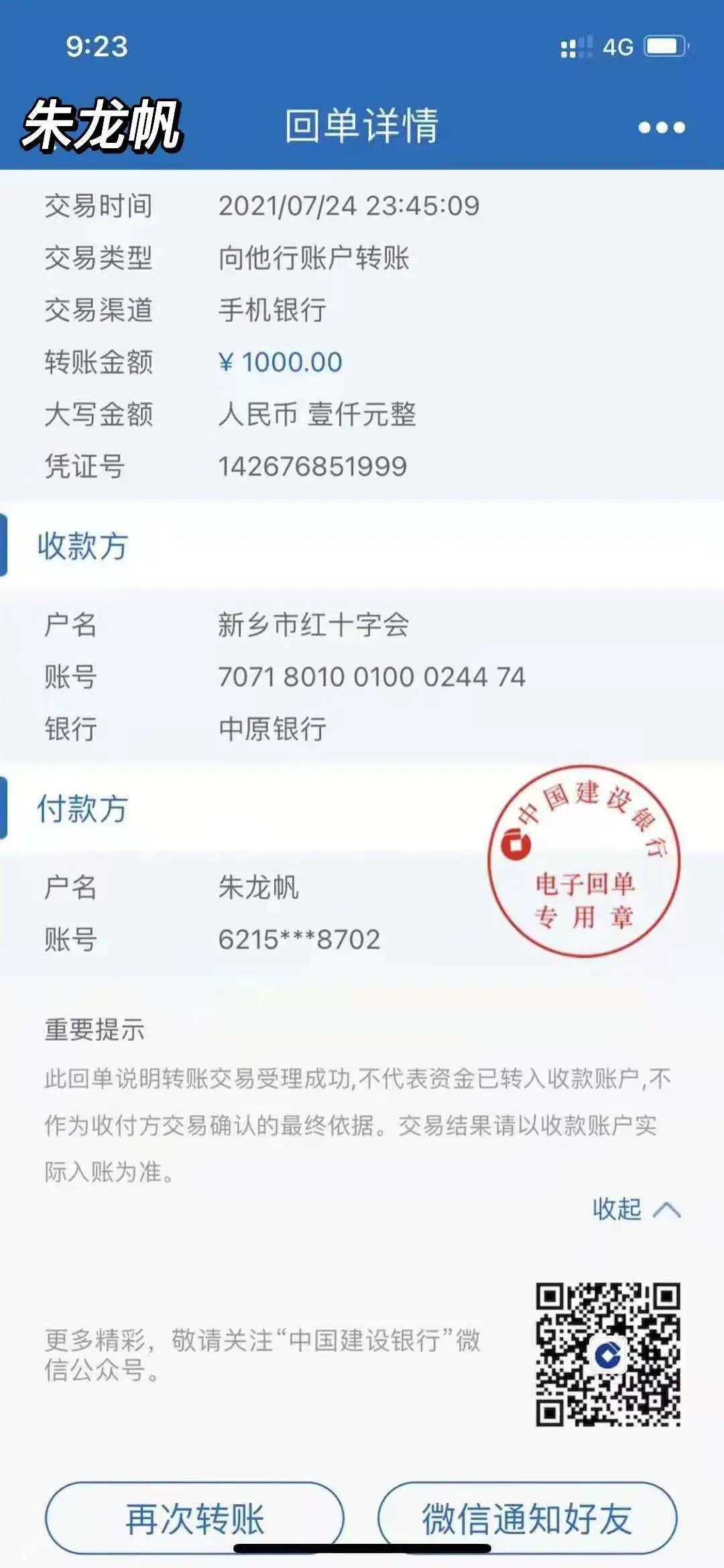 暴雨无情人有情,每一次沉重的灾难,都是对民族精神的洗礼,对民族力量的一次凝聚。只要国民一心,共同坚守,就没有过不去的坎,雨后一定会有彩虹的到来。朱龙帆同学在志愿服务的同时还将自己寒暑假期间勤工助学与自己上学期间攒下来的1000元进行志愿捐赠,帮助重建家园。在朱龙帆同学看来,河南是他的家乡,是他从小生活的地方,洪水的涨与退都与自己息息相关,自己有责任也有义务保护自己的同胞和自己深深眷恋的文化、特产、建筑,而作为新时代青年,自己更有责任与义务去守好自己生存的家园。
