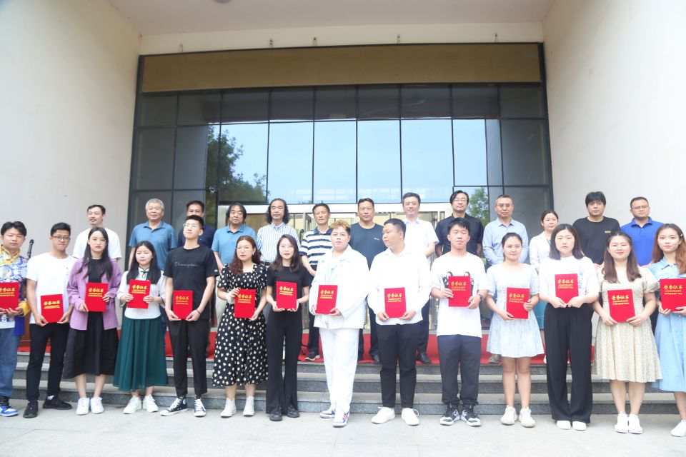 领导老师分别为获得优秀毕业作品奖的学生颁奖