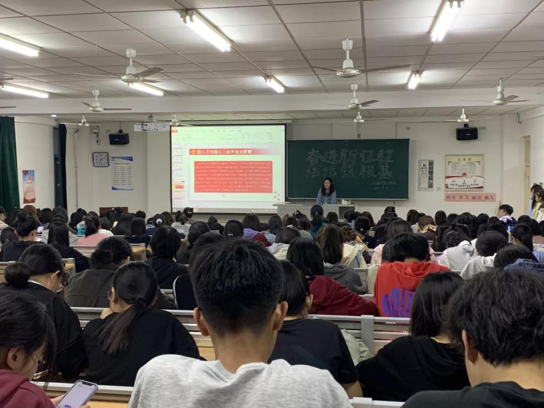 学生方面,学院以班会、团课的形式,在不同年级不同班级开展了习近平法治思想专题学习会。作为新时代青年人,要坚定法治信仰,汇聚法治力量,勤学善思、勇毅笃行,将理论学习、实践锻炼和素质养成有机结合,为中国特色社会主义事业蓬勃发展添砖加瓦。