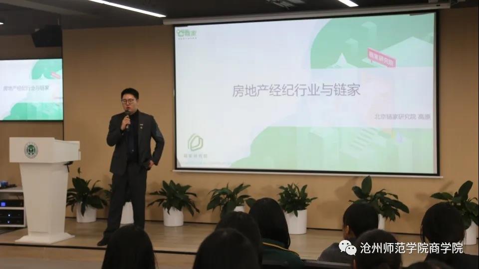 北京链家置地房地产经济有限公司是商学院市场营销专业的实习基地之一。该公司实力雄厚,拥有员工超万人,致力于用大数据引领互联网+的新经纪模式,打造房地产服务行业的国民品牌,培养出了一批又一批捍卫品质、擅长赋能、成就他人的管理人才和创业者,为商学院市场营销专业学生的实习、就业搭建了良好的平台。此次专业认知由链家部门经理等一行人员带领学生参观了链家培训中心;由丽泽大区秦立明总监及专门的讲师就链家公司的发展史、企业文化、业务分布及行业发展前景等知识进行了分享;同时还带领同学们体验了线上VR 看房。使同学们开阔了视野,对市场营销专业有了更加清晰的认知。