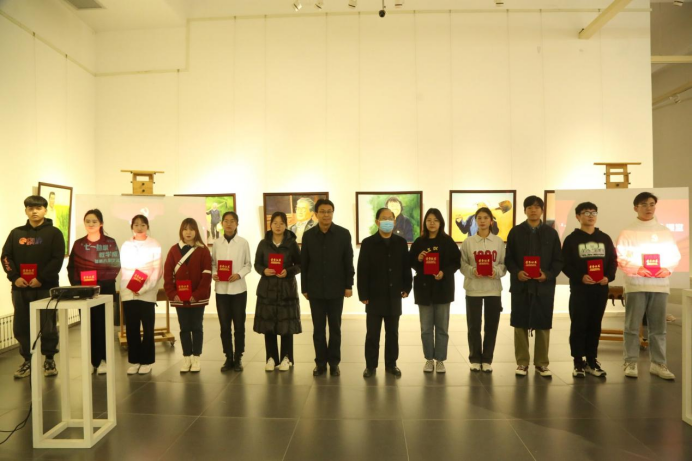 彭学君在致辞中表示,美术学院坚持立德树人,结合自身专业特色充分挖掘“七一勋章”获得者感人事迹,探索出了“思政+专业+实践”的教学新模式,进一步强化了学校美育育人功能,构建了德、智、体、美、劳全面培养的教学体系,引领学生树立了正确的审美观念、陶冶了高尚的道德情操、培养了深厚的民族情感,激发了想象力和创新精神。期望美术学院全体师生以此次活动为契机,继续弘扬功勋模范精神,强化思政育人力量,不断推进学习教育活动走向深入、取得实效,让红色基因、革命薪火代代相传。