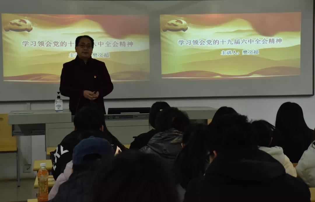 樊文超指出,一百年来,党领导人民进行伟大奋斗,积累了宝贵的历史经验,这是党和人民共同创造的精神财富,必须倍加珍惜、长期坚持,并在新时代实践中不断丰富和发展。他强调,新时代,我们都是“赶考人”,必须更加自觉、更加坚定地学习贯彻党的十九届六中全会精神,从党的百年奋斗重大成就和历史经验中启迪智慧、汲取力量、奋勇前行,努力学好专业知识,交上一份满意的答卷。