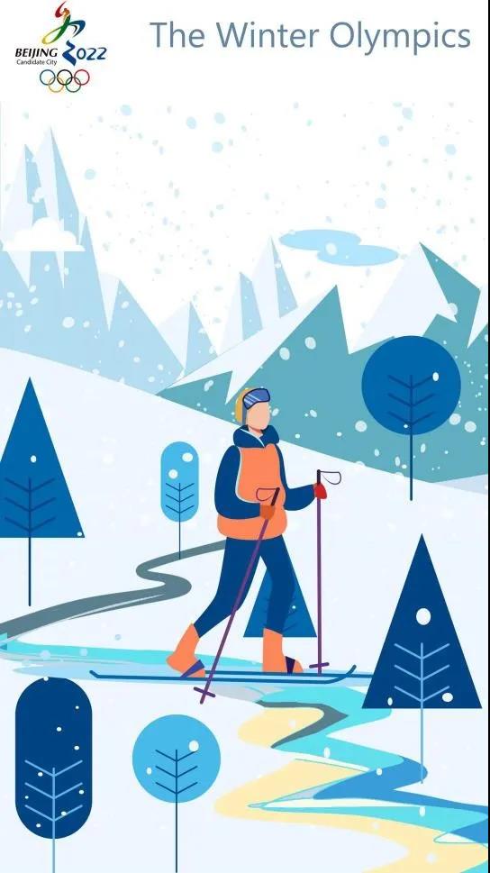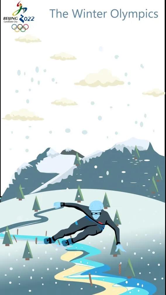 本作品所设计的主题是第24届冬季奥运会,举行地点是北京以及张家口,此作品用手绘的方法描绘雪山以及丛林,并且在人物的下面画出彩色的滑道,表现出了充满速度与动感的赛道,再加上手绘的运动员们,他们与赛道场景融为一体,展示出了运动健儿们的在赛场上拼搏的激情与活力。
