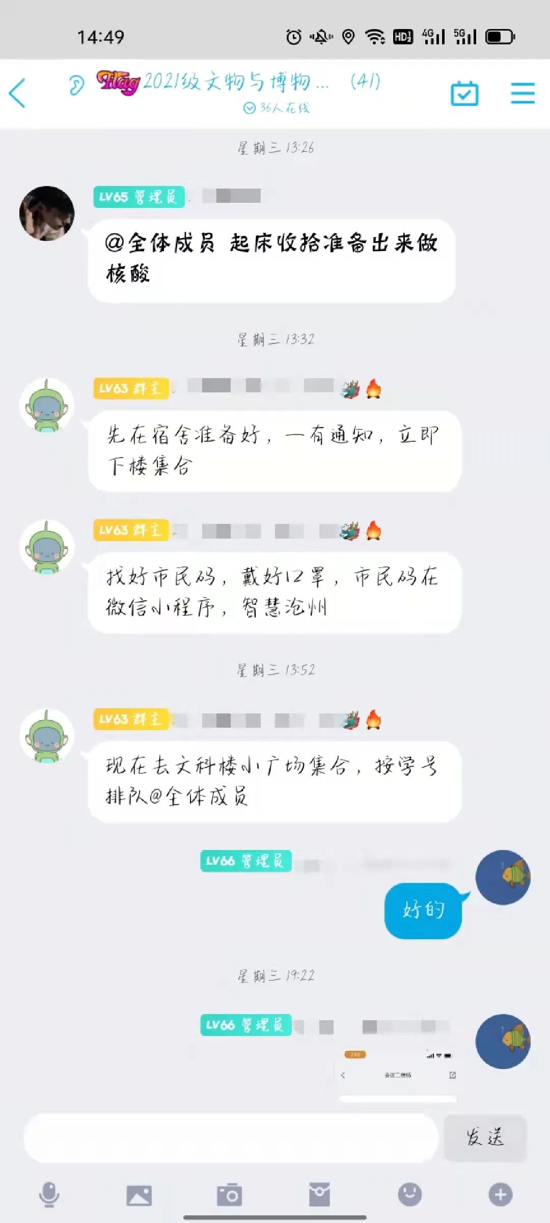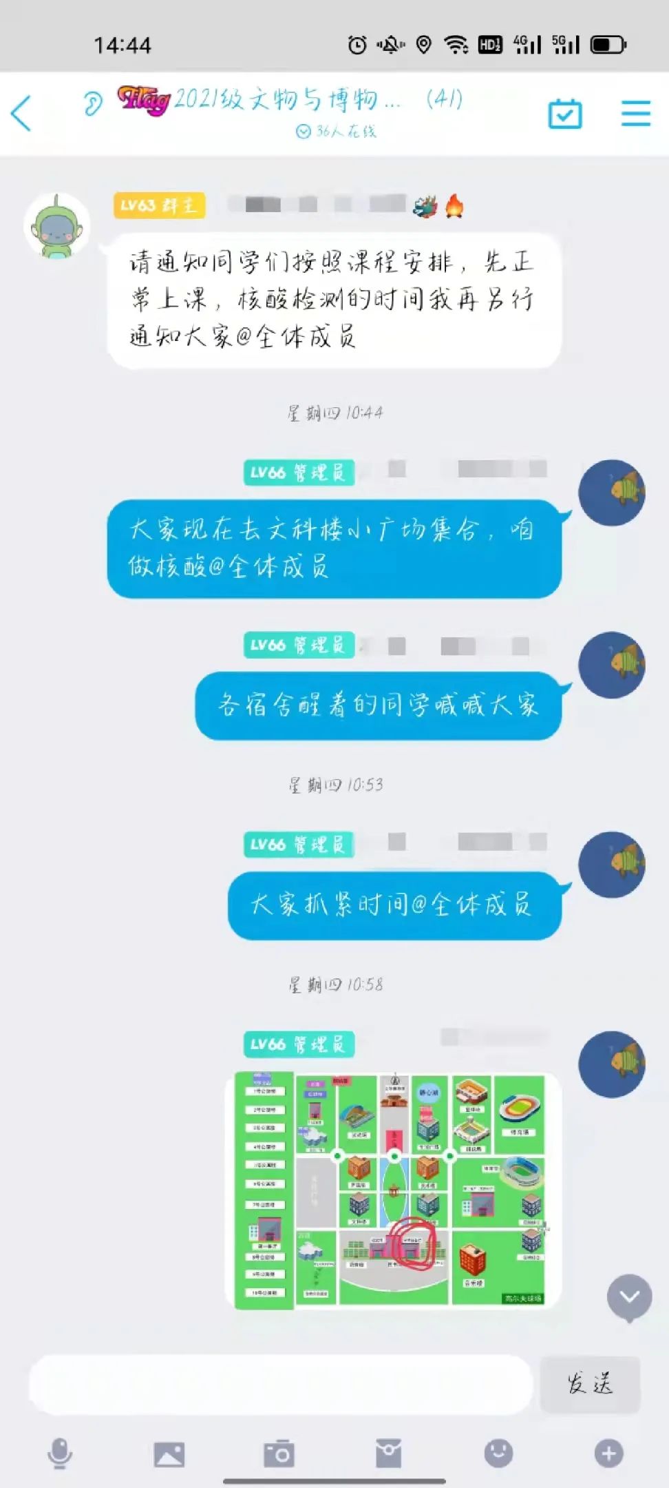 为应对突如其来的疫情,政史学院积极组织本院学生开展疫情防控工作。学院领导、老师落实防控任务,严控人员流动,快速开展筛查,组织全院师生进行核酸检测,筑牢疫情防控安全线。病毒无情,人间有爱。自新冠肺炎疫情发生以来,全院上下万众一心、众志成城,为疫情防控建立起了一道坚实的屏障。