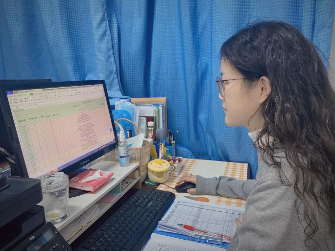 为组织学生有序进行核酸检测,做到“不间断 、不聚集、有序化”,在最开始的三天里,郑佳老师每天只能睡四、五个小时,便要继续投入到工作中。在郑佳老师和其他辅导员老师的共同努力下,我院核酸检测效率明显提高,核酸检测现场秩序井然。面对繁杂的学生事务和大量的数据材料,郑佳老师努力坚守一线,不退缩、不懈怠,自觉建立“日清日结”工作台帐,督促自己高质高效完成当天工作。