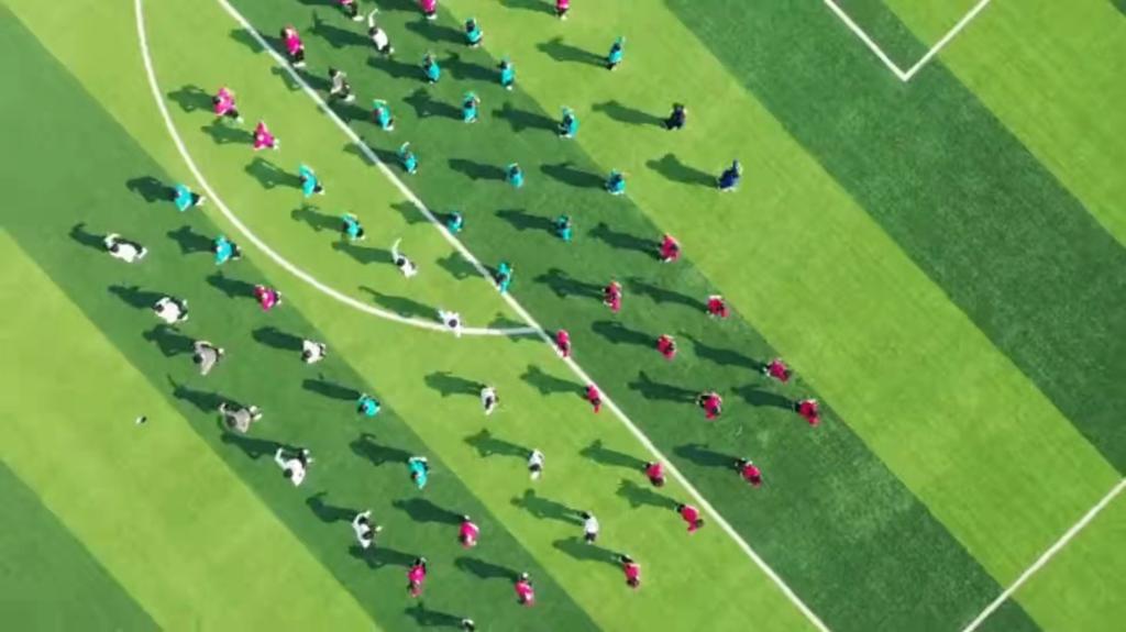 阳光正好,微风不燥,同学们身着色彩鲜艳的统一服装,在方阵中跳跃舞动,展示着自己原创的舞蹈动作,整齐有序,舒展娴熟,肢体的语言谱写出青春华美的乐章,激荡的旋律洋溢着青春如火的热情。欢快的舞蹈是抚慰心灵的良药,一套青春活泼的韵律操既展现了同学们英姿飒爽的风采,又体现了教育学院学生发挥创造性积极创作的优秀成果,在展现了教育学院学生专业能力的同时,缓解了大家的思想压力,坚定了大家战胜疫情的信心,为校园疫情防控常态化工作积极助力。