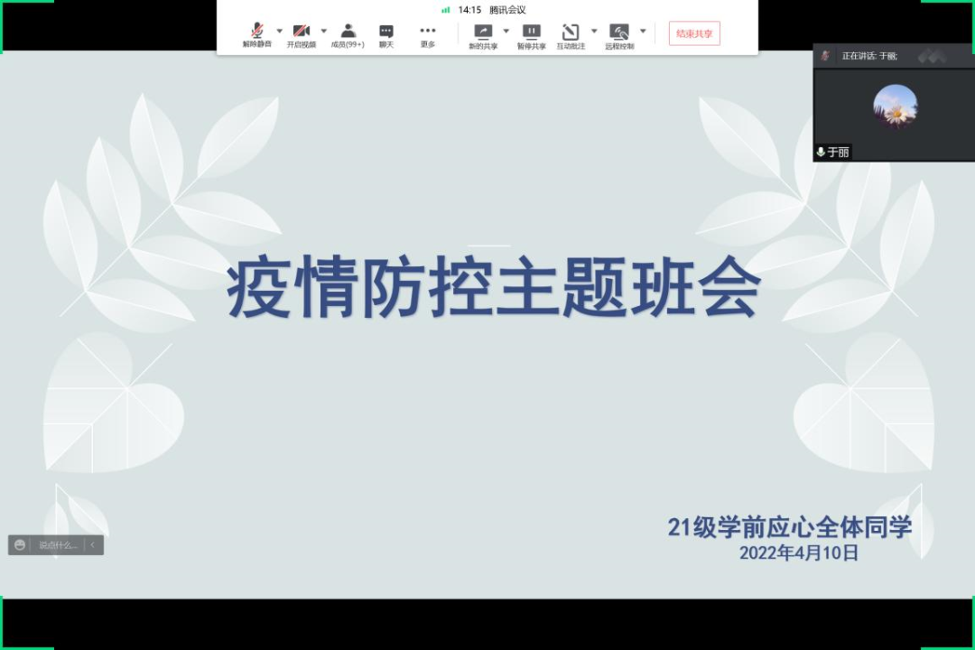 党总支书记金晓雪传达了党委书记云电军的讲话精神,并要求全体教师要进一步提高政治站位,严格落实防控责任,将会议精神学习到位、领悟到位、要求到位、落实到位。