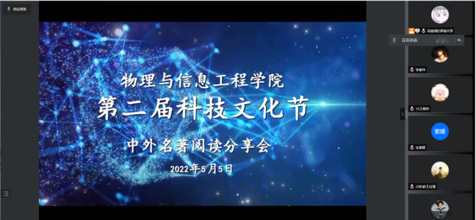 近日,根据学校关于开展市民素质提升工作的方案要求,物理与信息工程学院以第二届科技文化节为平台,通过科技知识宣讲、云观看科学记录片、“寓”你同行宿舍文明文化建设、生命健康讲座、中外名著阅读分享会、红色经典分享会等活动提升师生文明素质。