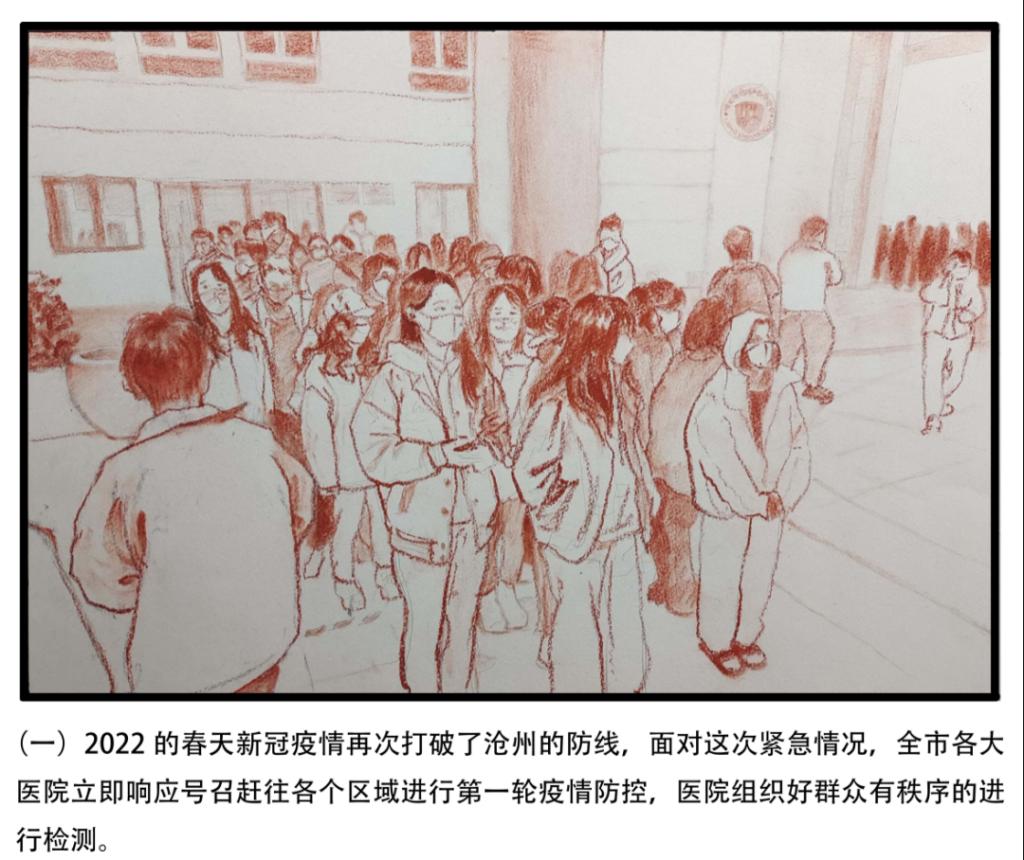 以艺术凝聚力量,以画作彰显决心。在当下共抗疫情的特殊时期,疫情防控人员舍小家为大家,以最坚毅果敢的姿态投入到这场没有硝烟的战争,与时间赛跑、与病毒斗争,全力保障在校师生的生命健康安全。美术学院教师杨帅带领2018级学生以绘画的方式,以笔为矛,化纸为盾,将抗疫的决心注入到作品之中,用行动向抗疫一线人员致以崇高的敬意,也为他们唱响最美赞歌。