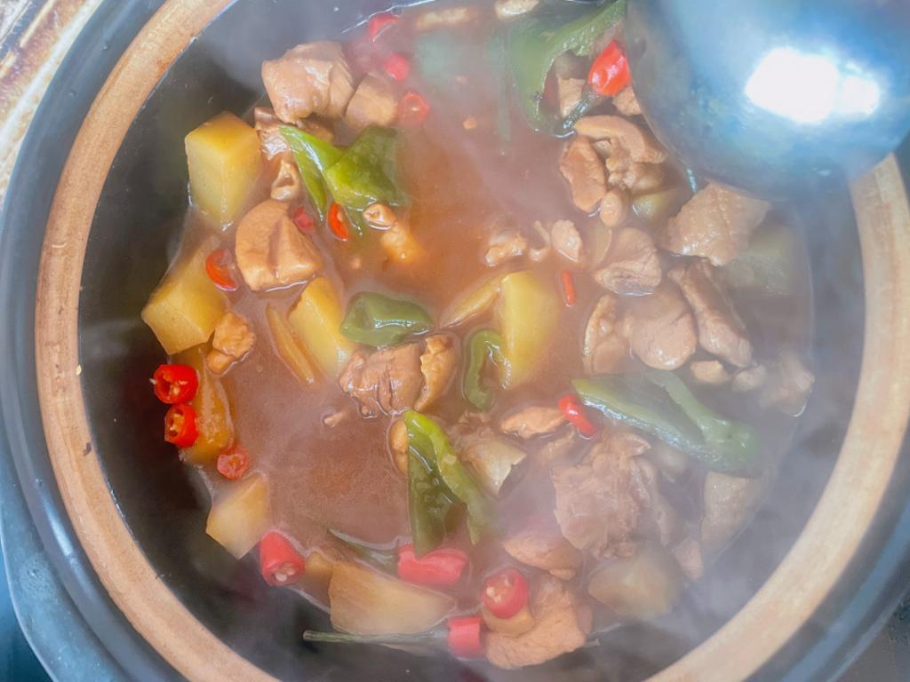 黄焖鸡是一种比较温和的食物,含有较高的热量,可以说是老少皆宜的美食。其中鸡肉含有的某些营养成分,可以有效补充人体所需的脂肪和磷脂,促进身体成长。黄焖鸡风味独特,最讲究一个焖字,火候掌握是十分重要的,因此我特意向妈妈请教了烹饪秘籍:黄焖鸡的鸡块先炒熟,再去焖。炒熟的时间不定,但焖需要大概15分钟,所以鸡肉不要切的太小,以免最后煮碎。出锅前倒入青辣椒翻炒,表面撒小米辣再焖5分钟就制作完成了。