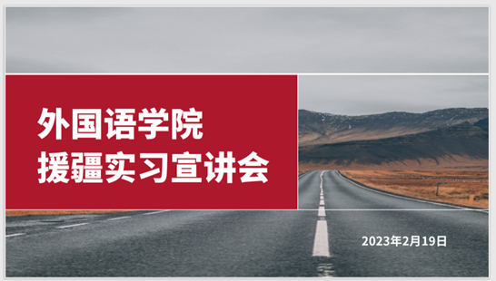 2月19日,外国语学院召开新疆轮台实习宣讲会,鼓励学生踊跃报名接过援疆实习的接力棒。