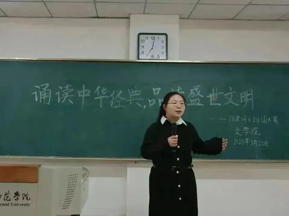为加强师范生专业技能训练,传承中华优秀传统文化,推进文明校园建设,文学院组织举办“诵读中华经典 品读盛世文明”经典诗文朗诵大赛。近日,决赛于齐越楼二阶梯教室举行,文学院副院长程艳芳、党总支副书记高雪莲,语文课程教学知名专家王桂宏、教研室主任苏聪聪以及团总支书记孙玉安担任评委。经过激烈角逐,12名同学在决赛中获奖。