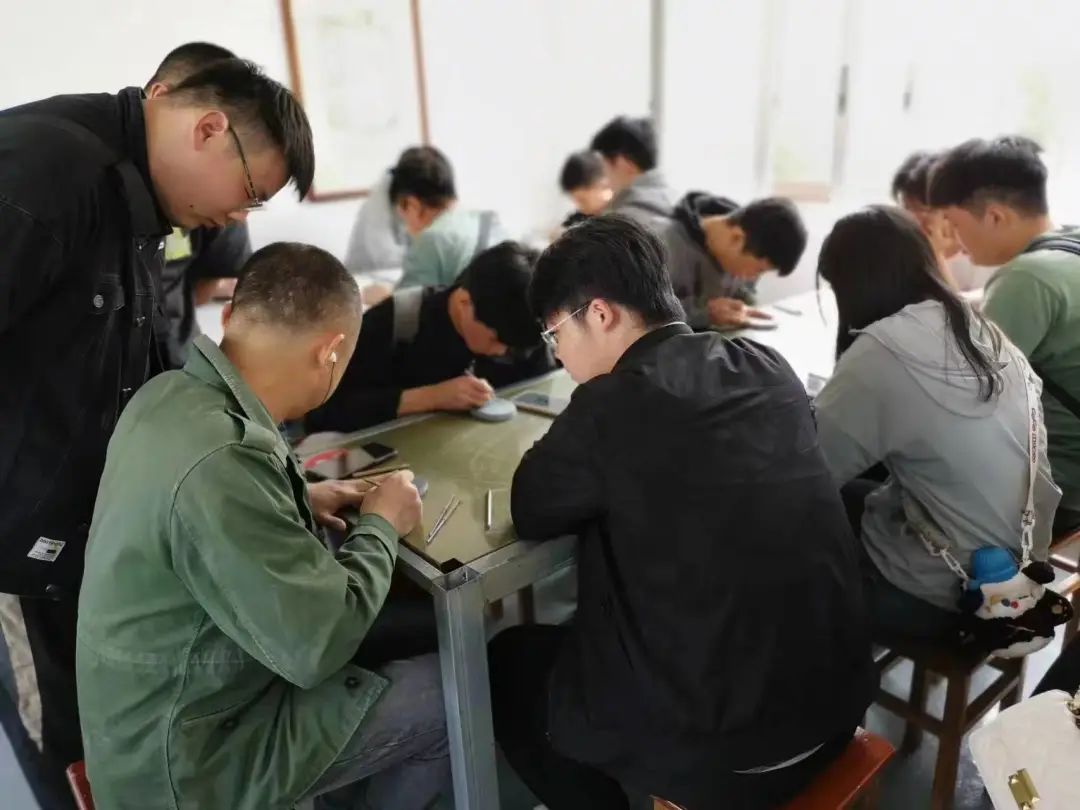 在老师们的带领指导下,学生们在徽州直观感受了传统文化的魅力,深入了解了书法在园林中的实用性和重要性,系统学习了宣纸的悠久历史和制作工艺,先后参观考察了中国宣纸集团的名家书画收藏展、齐云山明清碑刻、歙县古城墨砚博物馆等。