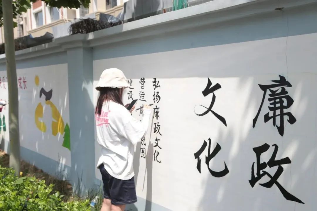 志愿者们不惧烈日骄阳,充分发挥丰富想象力和创造力创作出一幅幅栩栩如生、富有文化气息的墙画。