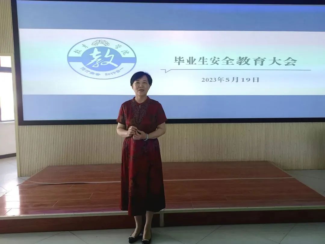 为进一步增强毕业生的爱校荣校和感恩意识,营造平安和谐的校园环境,做好毕业生离校服务工作,5月19日下午,教育学院在文科楼一阶梯教室召开2023届毕业生安全暨感恩教育大会。教育学院党总支书记金晓雪、辅导员老师姚兰出席。教育学院2023届全体毕业生参会。