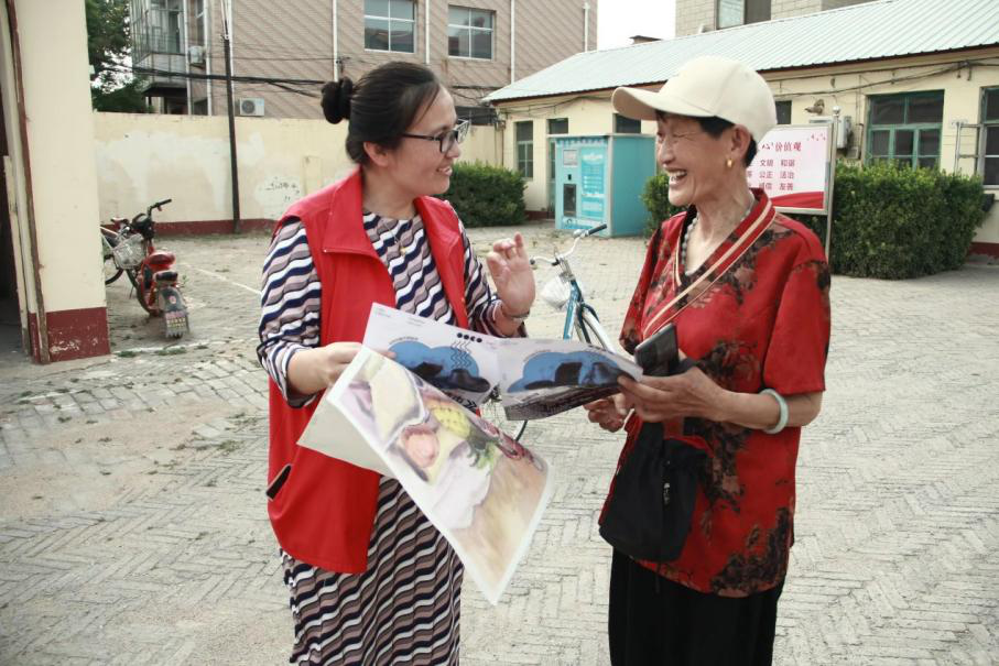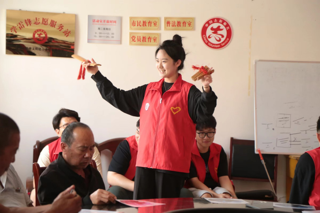 到达张庄子后,李润祺同学以快板的形式向村民们宣传社会主义核心价值观,志愿者们与村民畅谈,气氛轻松愉悦。在“念海报,赠画作”活动中,志愿者们以“富强、民主、文明、和谐,自由、平等、公正、法治,爱国、敬业、诚信、友善”24字核心价值观为主线,从国家、社会、个人三个层面做了深刻解读,带领村民诵读社会主义核心价值观,并向村民们赠予该院学生的画作。