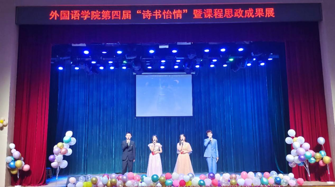 诗书是对精神的洗礼与陶冶,为了让广大学生热爱阅读、享受阅读,打造“书香校园”,5月30日,外国语学院在冀春音乐厅举办第四届“诗书怡情”暨课程思政成果展。