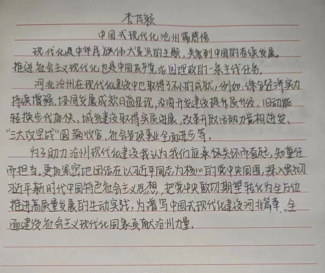 为全面贯彻党的二十大精神,激励同学们弘扬运河文化,勇担时代使命,为谱写中国式现代化沧州美好篇章贡献青春力量,近日,文学院马克思主义学习小组于齐越楼203教室开展“中国式现代化沧州篇章”主题实践活动。