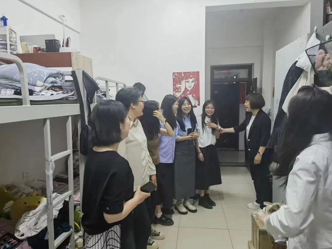 为做好毕业生离校服务工作,向同学们表达深深的关怀与祝福,近日,文学院院长王金萍、副院长程艳芳、党总支副书记高雪莲带领辅导员王赫一、曹悦到该院毕业班宿舍进行走访,与学生一一话别,共叙离情。