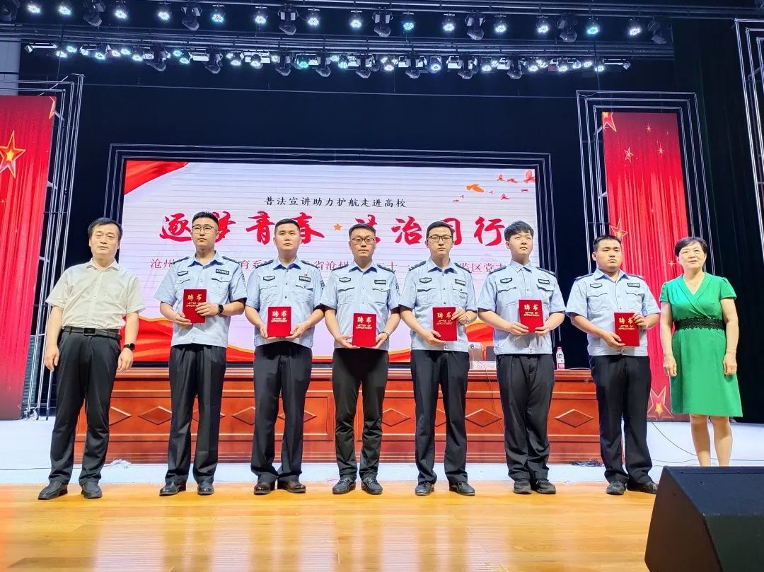 宣讲开始前,教育学院党总支书记金晓雪、教育学院院长苟增强为沧州监狱的干警颁发校外法治辅导员聘书。