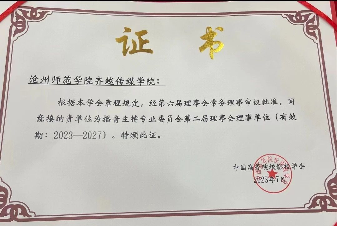 近日,中国高校影视学会播音主持专业委员会2023年学术年会暨第二届理事会成立大会在中国传媒大学图书馆圆形报告厅举行。齐越传媒学院再次当选中国高等院校影视学会播音主持专业委员会理事单位。